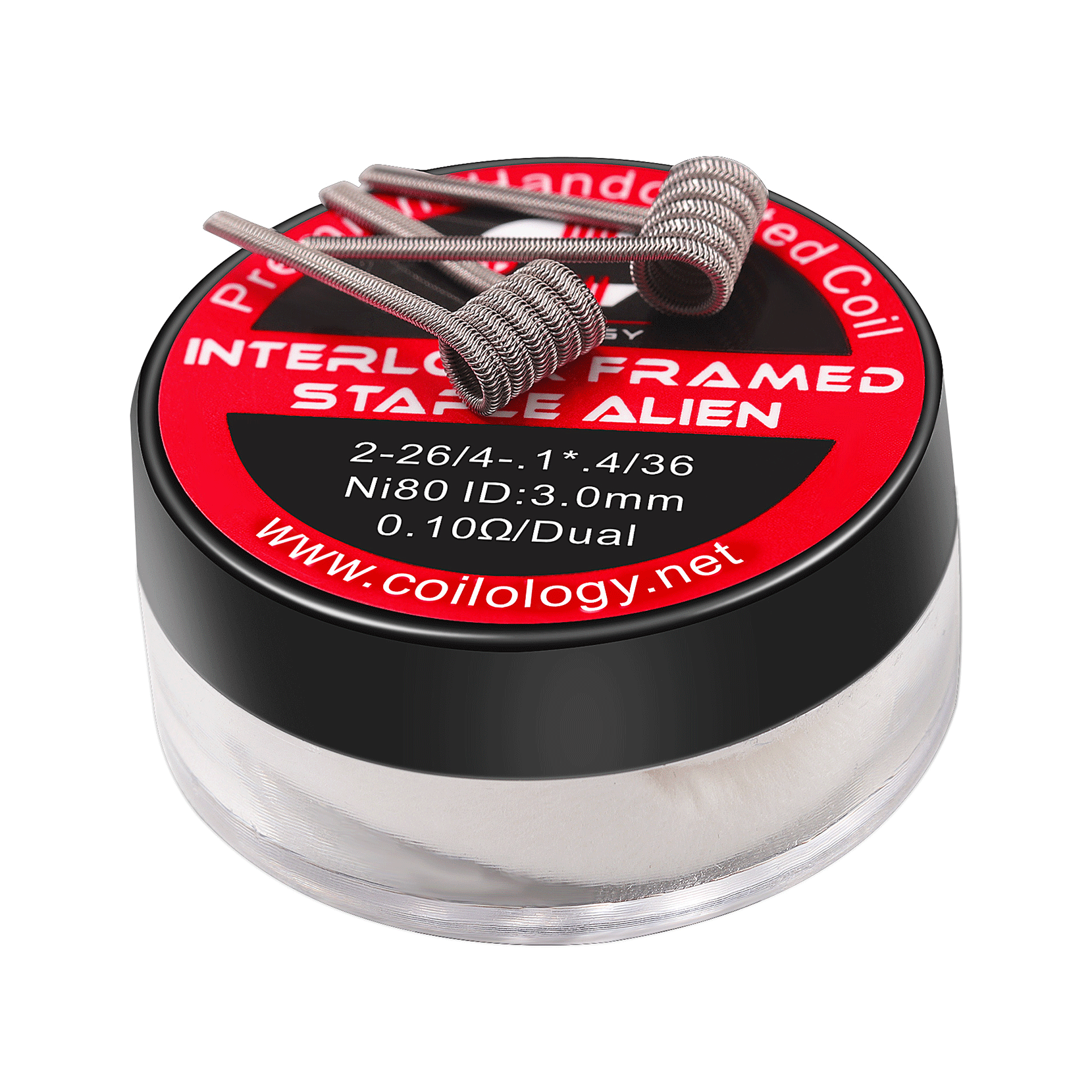 Same as Alien Coil ,Due to this configuration ,the surface tension of the liquid is fully taken advantage of by making the coil.This coil sucks juice off of the wick with capillary action created by its wire .Without breaking your budget, Coilology Interlock Framed Staple Alien coils provide out of this world flavor and vapor production.