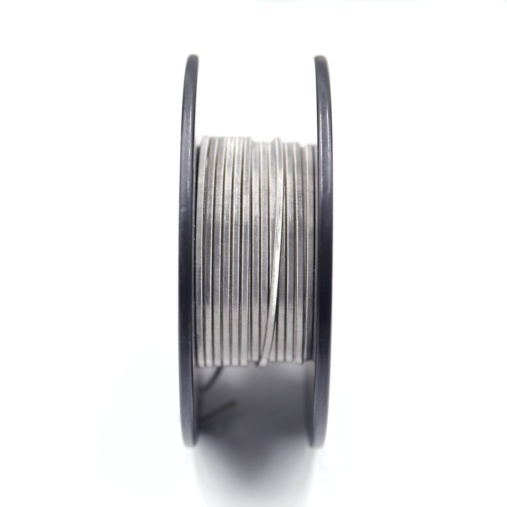 The staple coil is a 8 ply ribbon wire wrapped with 36ga wire.This variation of the fused Clapton has a quicker ramp-up time due to the stacked ribbon cores. The tiny grooves in between the wraps trap e-juice and contribute to its enhanced flavor.